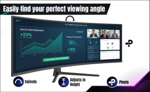 - Adjustable stand base : ergonomic design to find your perfect viewing angle: swivel, pivot, height adjustable stand base.