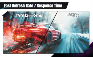 - 144Hz refresh rate + 6ms response time : smooth visuals and seamless lag-free performance.