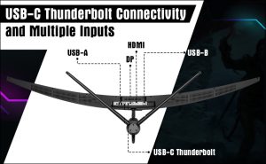 - USB-C connectivity : multiple inputs: HDMI, USB-C, USB-A, USB-B, Display Port.